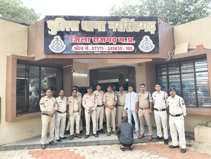 श्रीमान पुलिस अधीक्षक राजगढ़ श्री अमित तोलानी (IPS) द्वारा फरार एवं वांछित आरोपियों की सतत धरपकड़ हेतु जिले एवं प्रदेश से बाहर टीमों को भेजकर प्रभावी कार्रवाई करने के निर्देश दिए गए हैं। जिले की सीमाओं में घटित अपराधों और उनमें सम्मिलित अपराधियों पर नकेल कसने हेतु उनकी प्रतिबद्धता के अनुरूप यह कार्रवाई लगातार की जा रही है।इसी क्रम में श्रीमान अतिरिक्त पुलिस अधीक्षक राजगढ़ श्री के. एल. बंजारे एवं अनुविभागीय अधिकारी पुलिस नरसिंहगढ़ सुश्री मिनी शुक्ला (IPS) के मार्गदर्शन में तथा थाना प्रभारी नरसिंहगढ़ निरीक्षक शिवराज सिंह चौहान के नेतृत्व में एक वर्ष से फरार चल रहे ईनामी आरोपी को गिरफ्तार कर विधि संगत कार्रवाई की जा रही है।